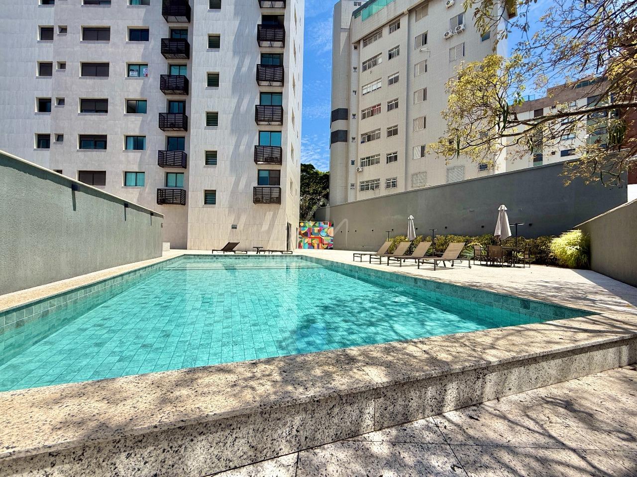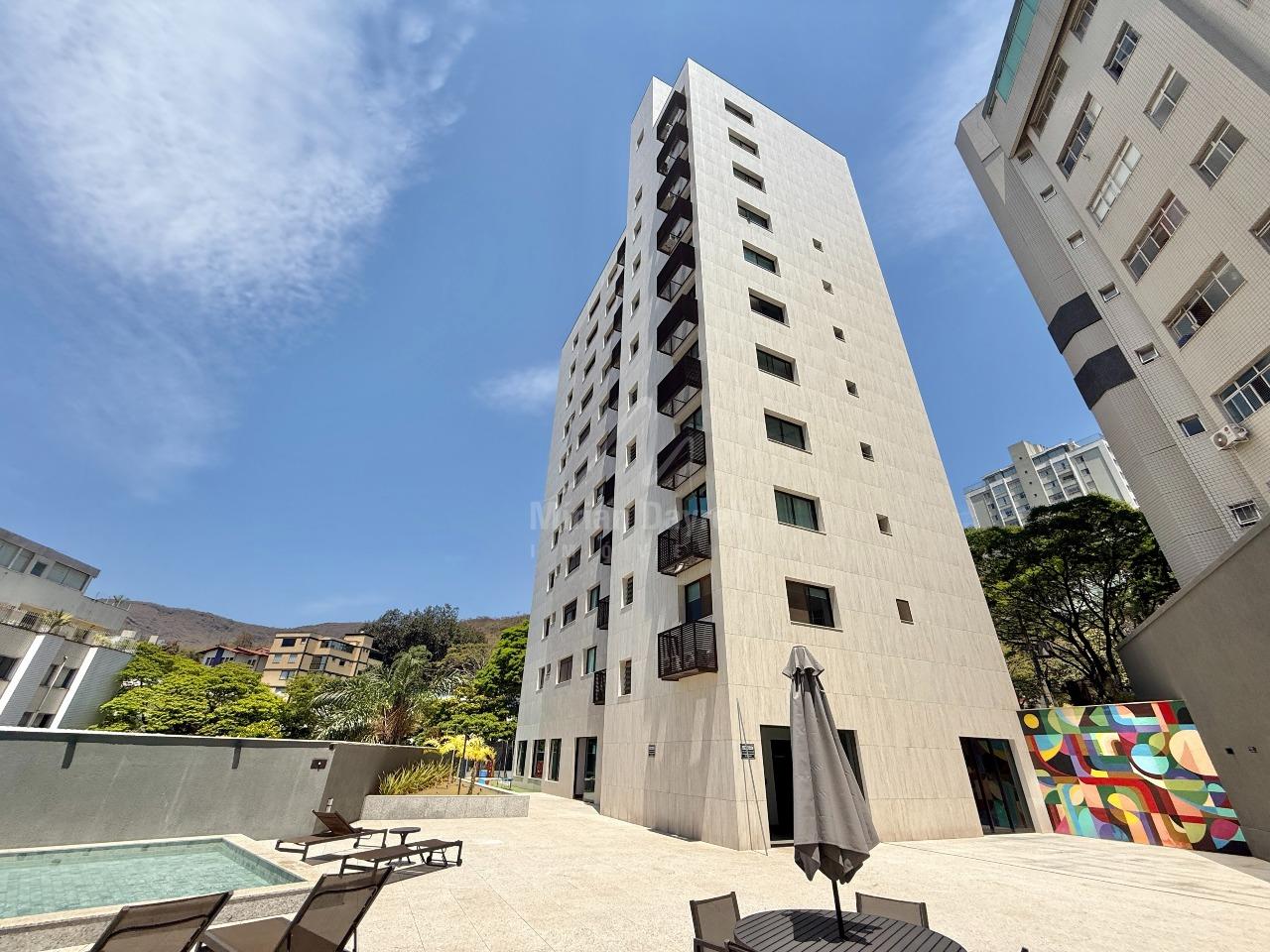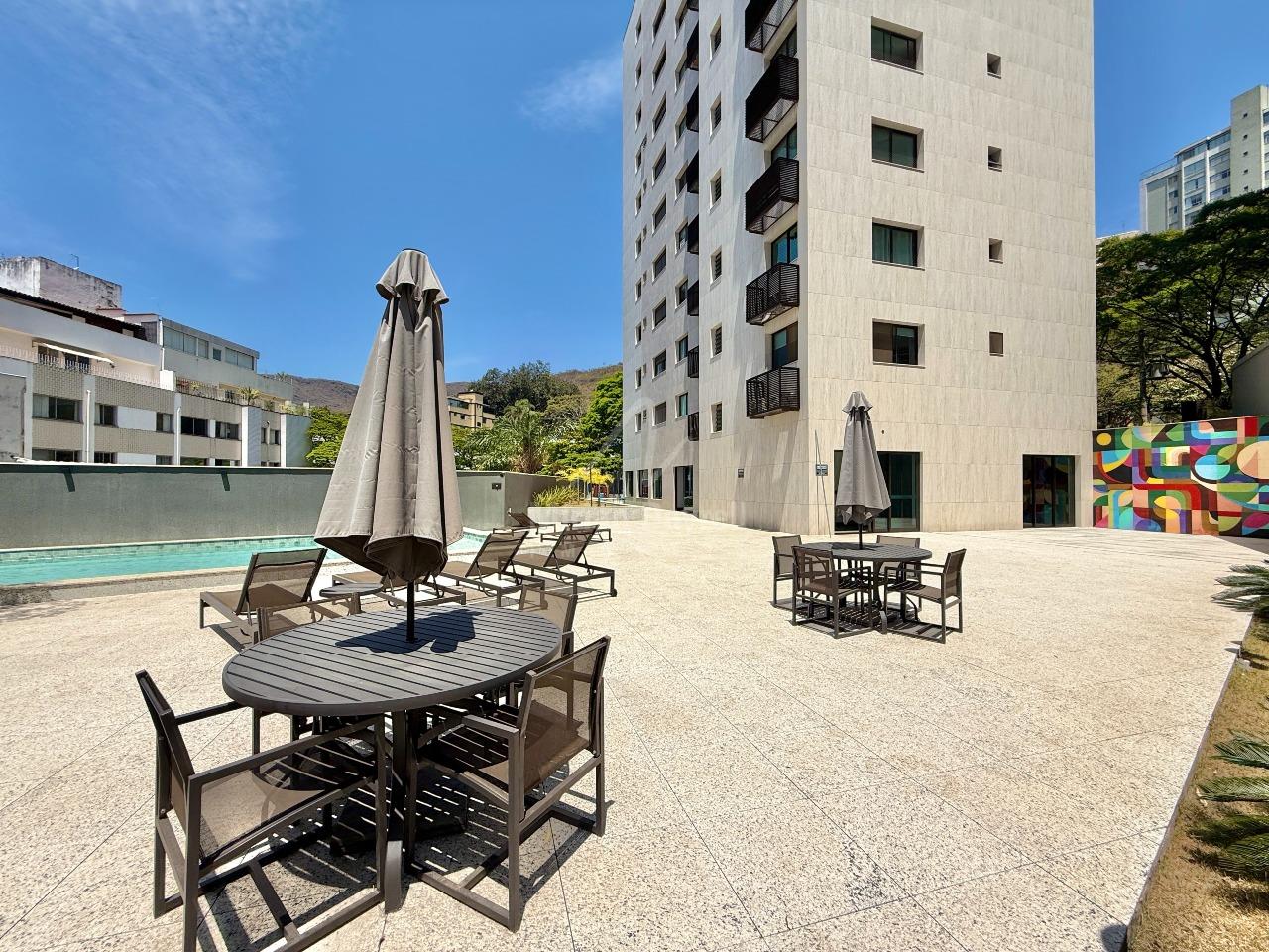 Apartamento para venda no bairro Sion com 77m²; sala para 2 ambientes, teto em gesso e iluminação planejada; rouparia no corredor; 2 quartos com ar-condicionado, sendo 1 suíte; banhos com armários, box e espelhos; cozinha estilo americana com armários, fogão e forno; área de serviço; 2 vagas de garagem em linha.