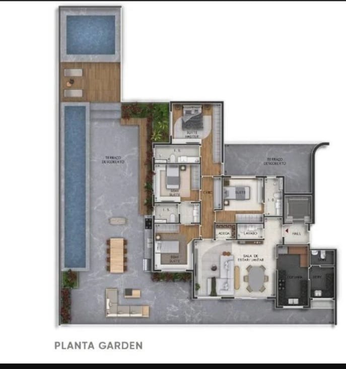 São 4 quartos, sendo 2 suítes e 2 semi-suites.