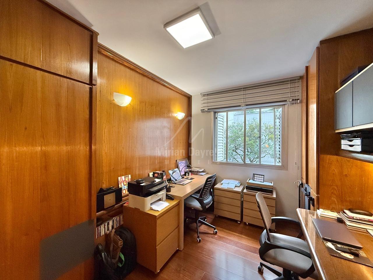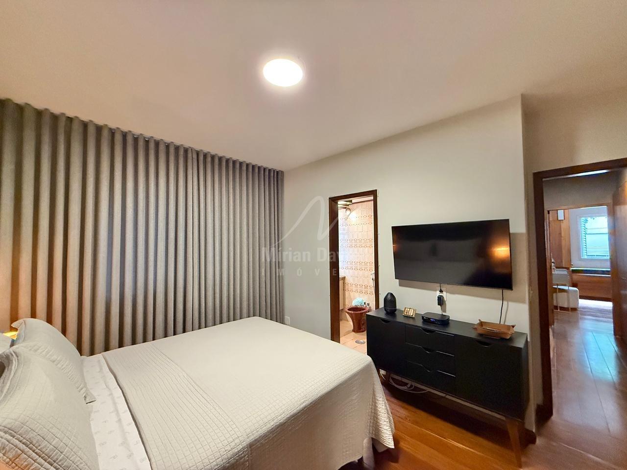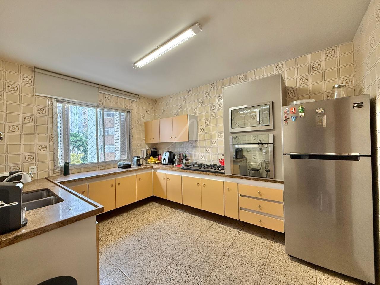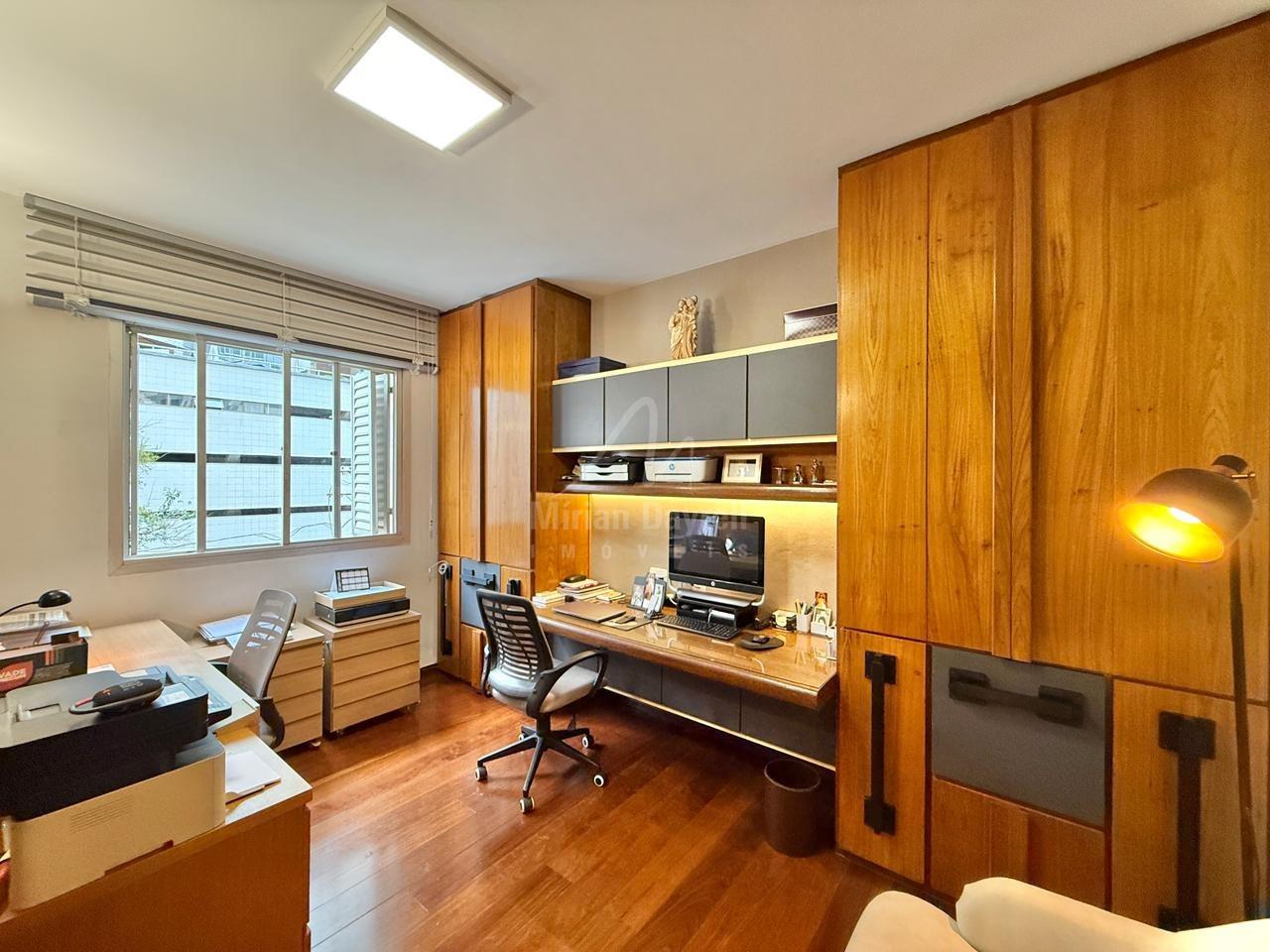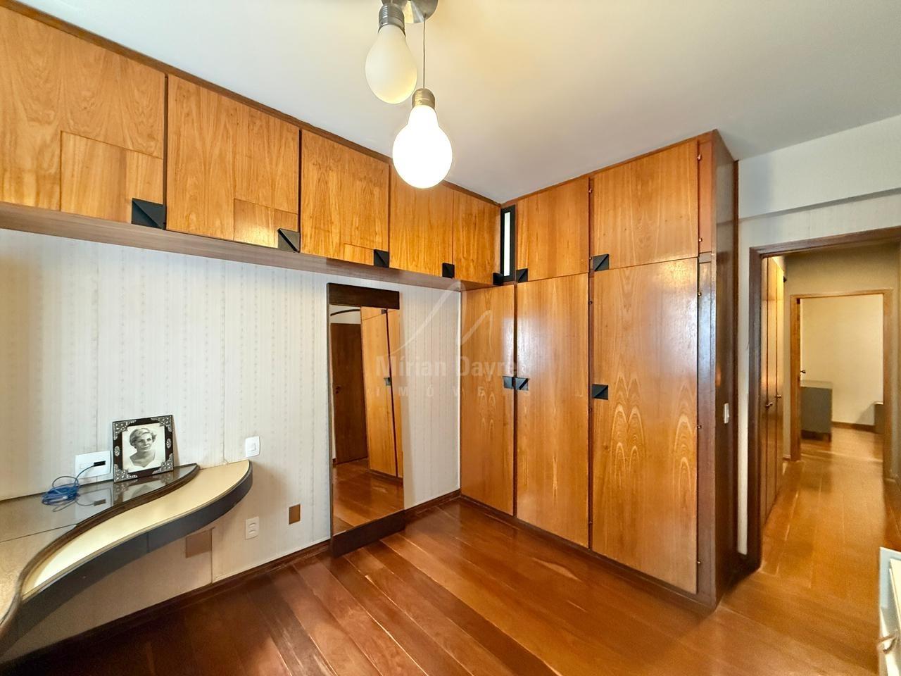 Apartamento à venda no bairro Funcionários com 204m²; sala de estar e jantar com piso em tábua corrida bem conservada; 4 quartos com armários, sendo 2 suítes; banhos com box, armários e espelhos; cozinha com armários planejados; área de serviço e DCE; 4 vagas de garagem.