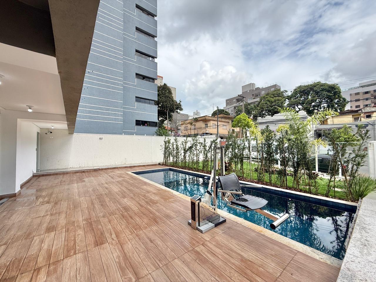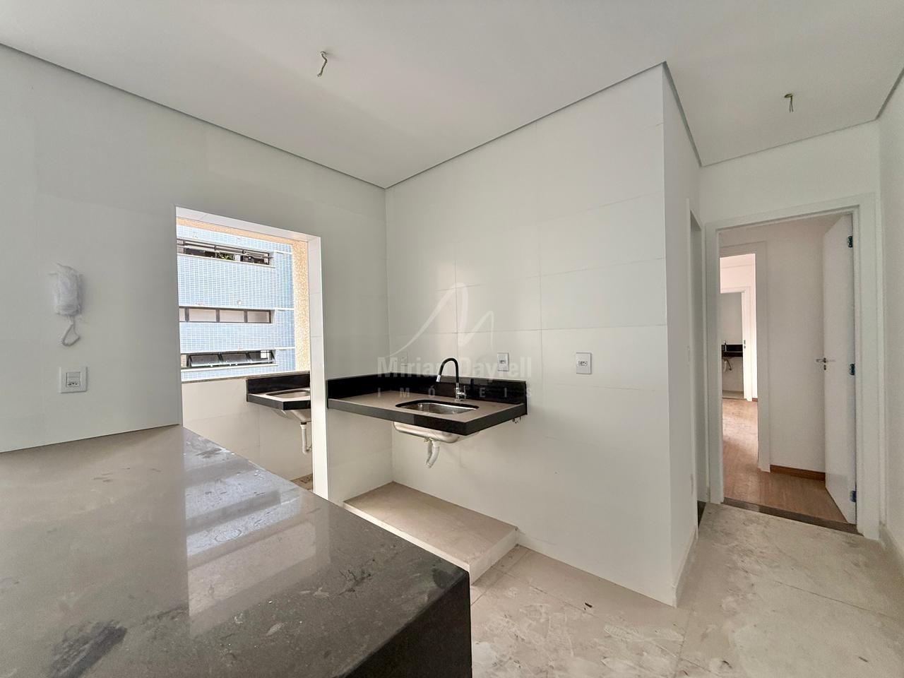 Apartamento à venda no bairro Santa Efigênia com 64m²; sala para 2 ambientes com piso em porcelanato; 2 quartos, sendo 2 suítes com piso em laminado em madeira e varanda; banho social em porcelanato com bancada em granito; cozinha estilo americana com bancadas em granito; área de serviço separada; 2 vagas de garagem cobertas em linha.