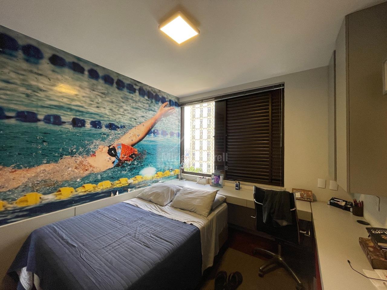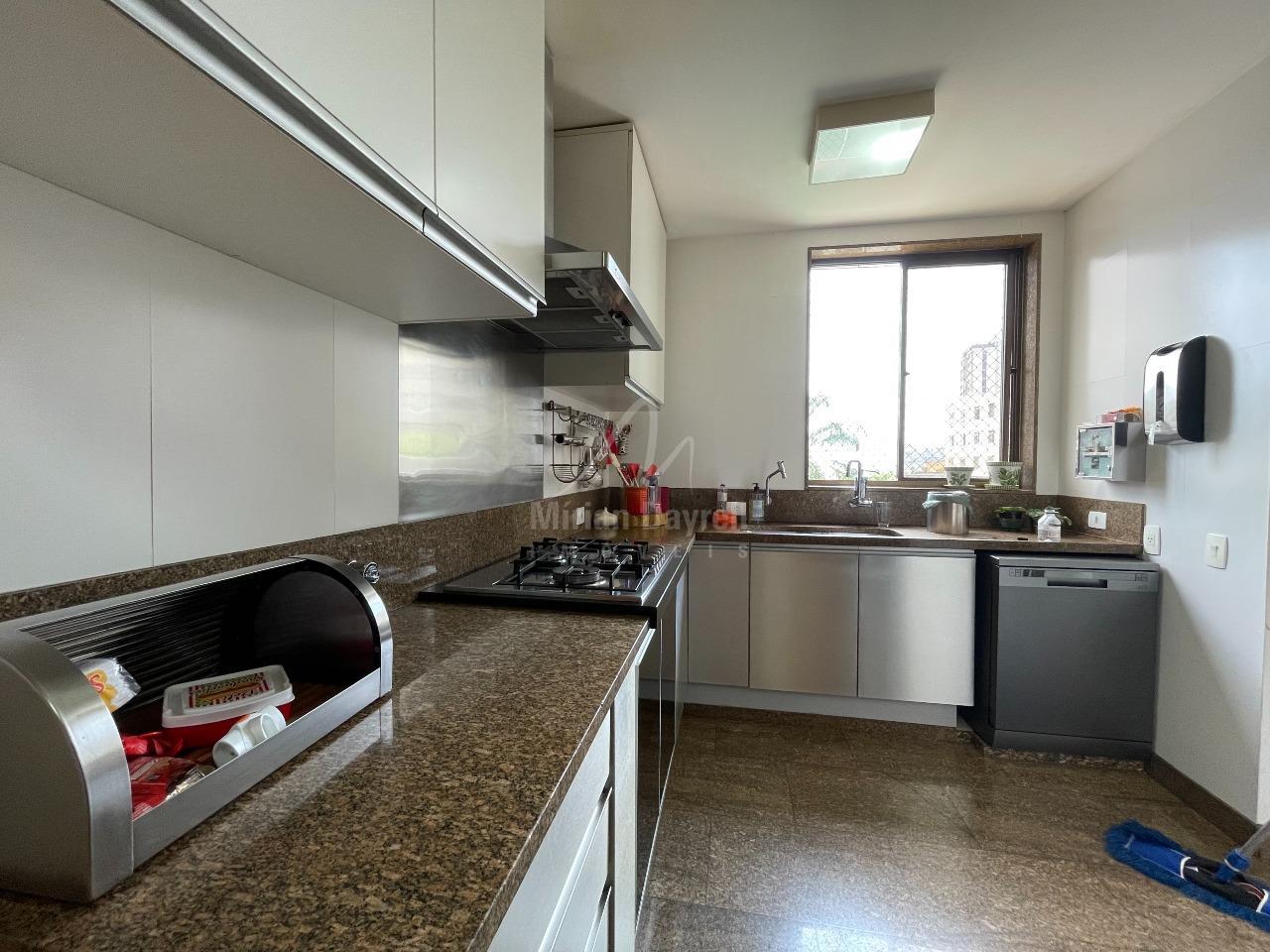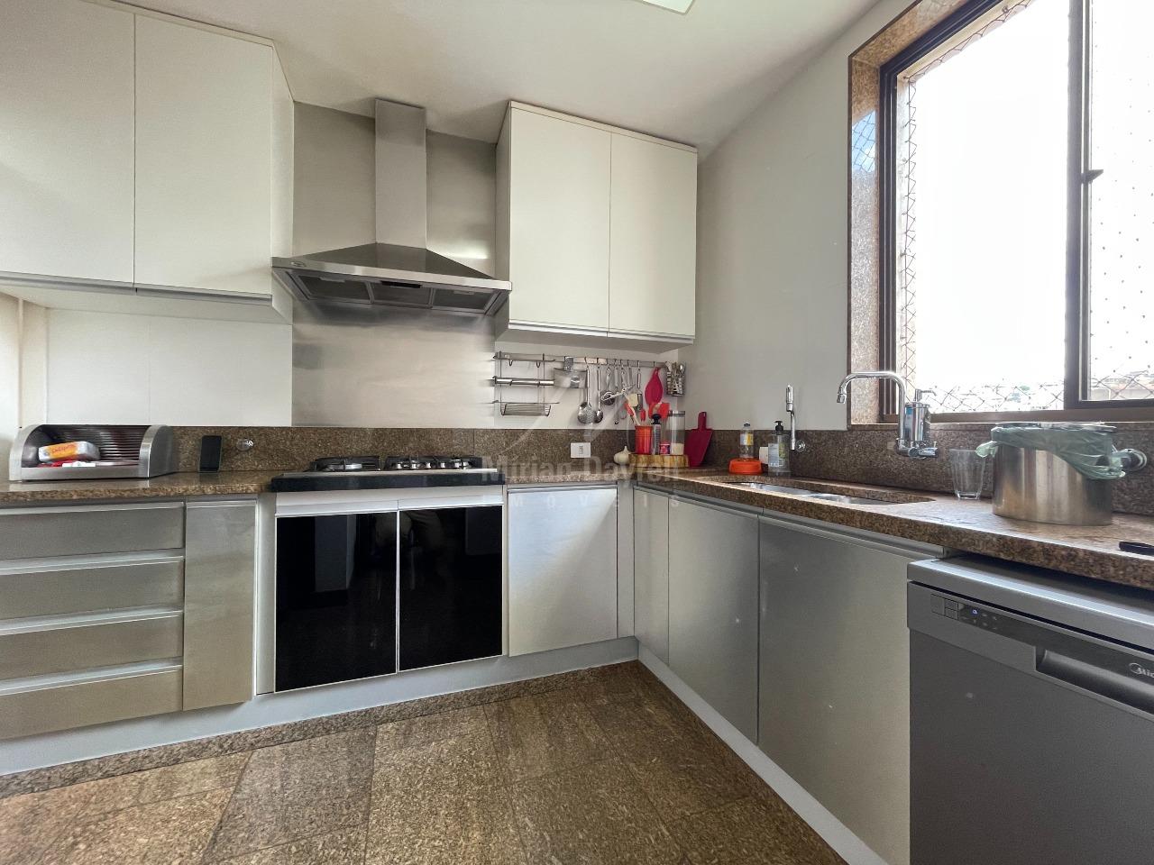Apartamento para venda no bairro Santo Antônio com 180m²; sala para 3 ambientes, com piso em tábua corrida, teto em gesso e iluminação planejada; sala de jantar; lavabo; rouparia no corredor; 4 quartos transformados em 3, sendo 1 suíte com hidromassagem e closet; banhos com box, armários e espelhos; cozinha com armários e despensa; área de serviço e DCE; 3 vagas de garagem.