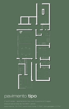 Área total de 123m2, sala para 2 ambientes, lavabo, 3 quartos sendo 1 suíte com closet e 2 semi suítes, cozinha, área e banho de serviço + escritório individual no mezanino de 10,07m2.
