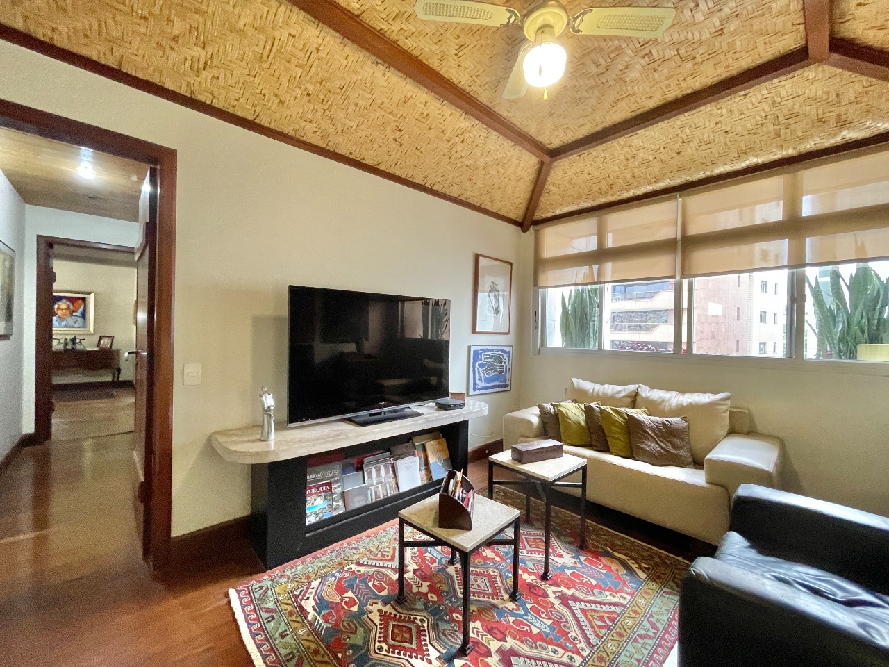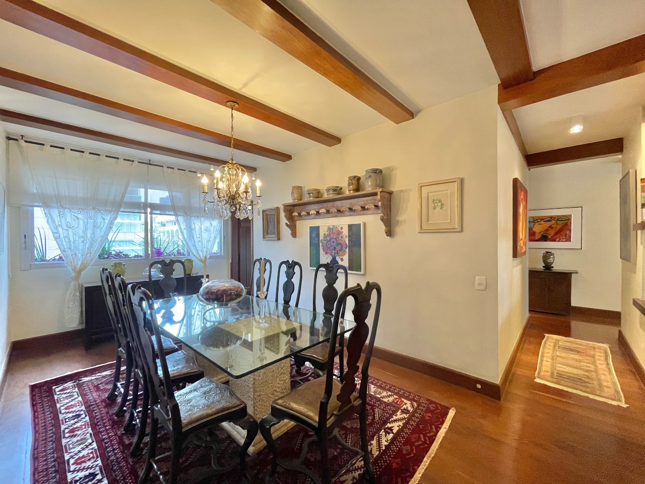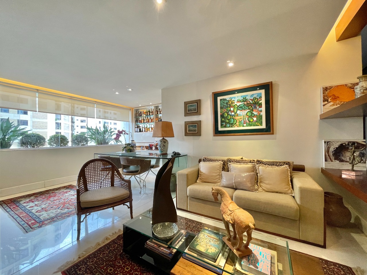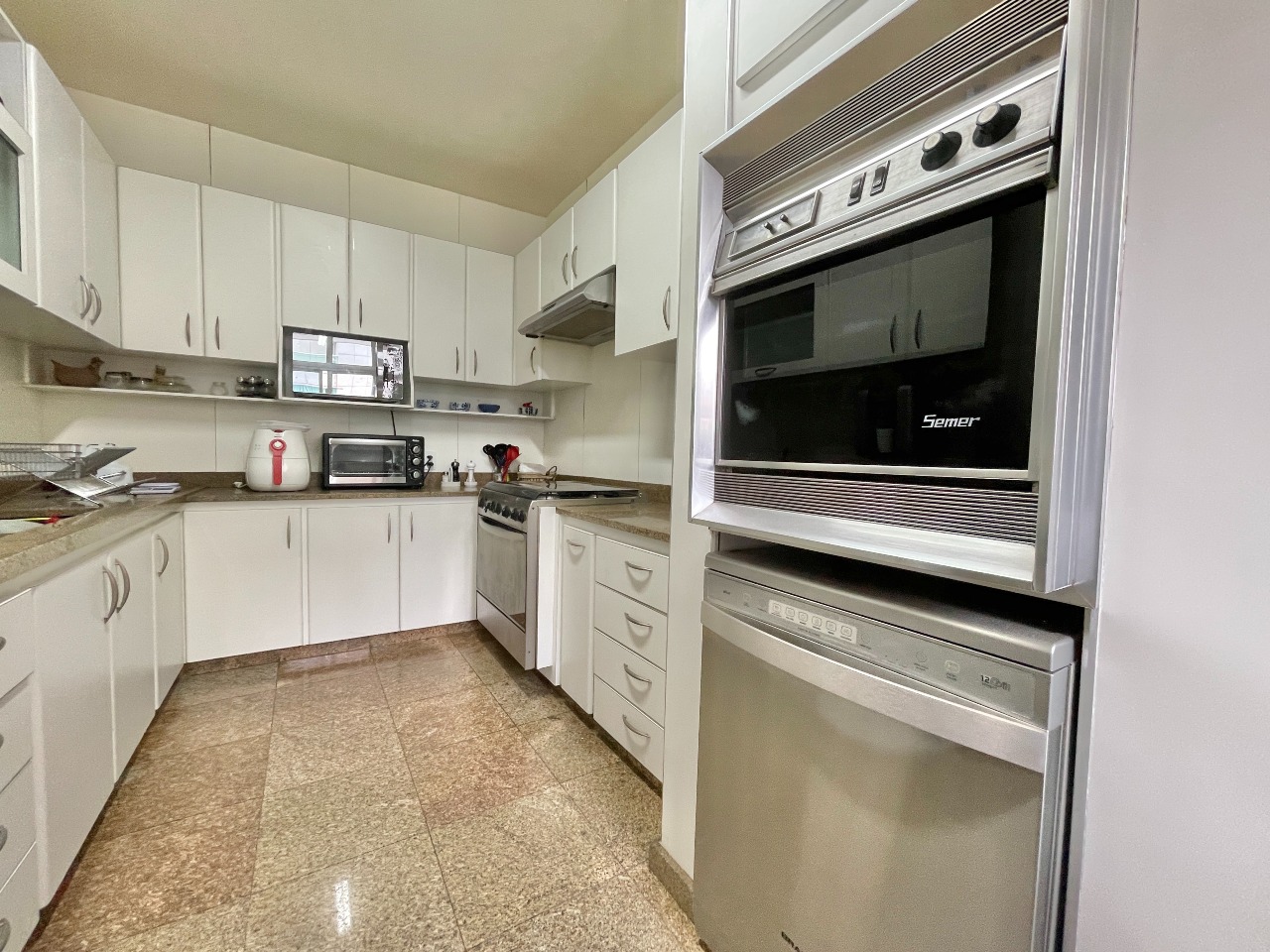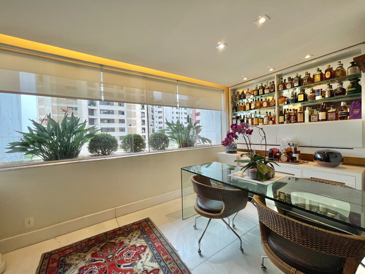 Apartamento com 314m² que contemplam 04 salas (Tv, Estar, Jantar e Bar); 04 quartos sendo 02 Suítes e 02 Semi Suítes; 03 banheiros e 01 lavabo na sala de Jantar. Cozinha, despensa, área de serviço, DCE com dois quartos para uso dos ajudantes.