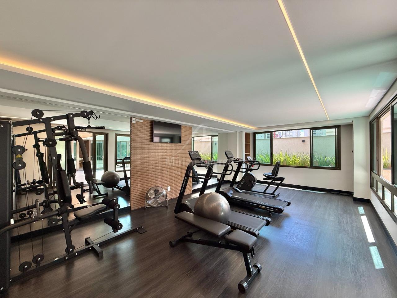 Apartamento à venda no bairro Sion com 87,44m²; sala com piso em porcelanato e painel ripado; lavabo; banhos com boxes, armários e espelhos; cozinha estilo americana com armários, fogão e geladeira; área de serviço; 2 vagas de garagem separadas.
