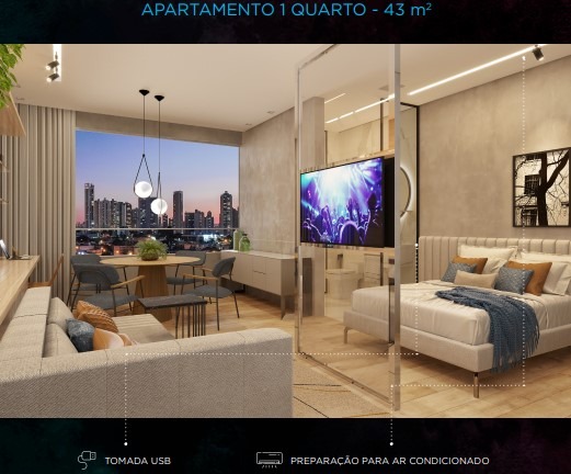 Benefícios: Lazer completo com espaço para eventos, cozinha, piscina com borda infinita, jacuzzi, bar molhado, espaço gourmet, salão de festas, espaço fitness, sala de massagem, salão de beleza, bicicletário com oficina completa, cinema ao ar livre, rooftop, área de fogueira, wi-fi e tomadas USB, bosque, quadras de beach tênis, beach vôlei, futevôlei, quadra poliesportiva, serviços Pay-per-use como bar e café, lounge, mini mercado, adega, lavanderia, concierge, espaço coworking, dentre outros.