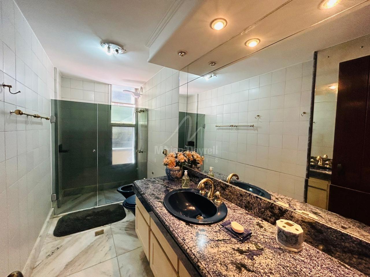 Apartamento diferenciado, muito amplo, claro e arejado. Sala grande, para vários ambientes, integrada a um varandão fechado com blindex; sala de jantar e varanda coberta, envidraçada, com acesso à área privativa descoberta, de aproximadamente 30m², com jardins e pergolado; lavabo; escritório; estar íntimo; sala de almoço; rouparia.