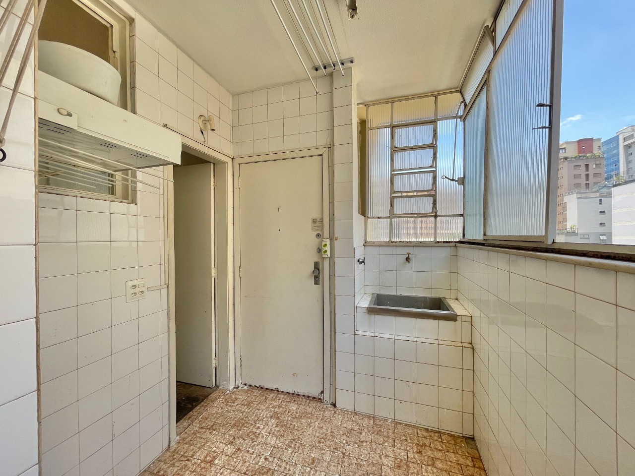 Apartamento para locação no bairro Sion com 100m²; duas salas,três quartos com armários sendo 1 suíte; banhos com box e espelhos, cozinha com armários planejados, área de serviço e DCE.