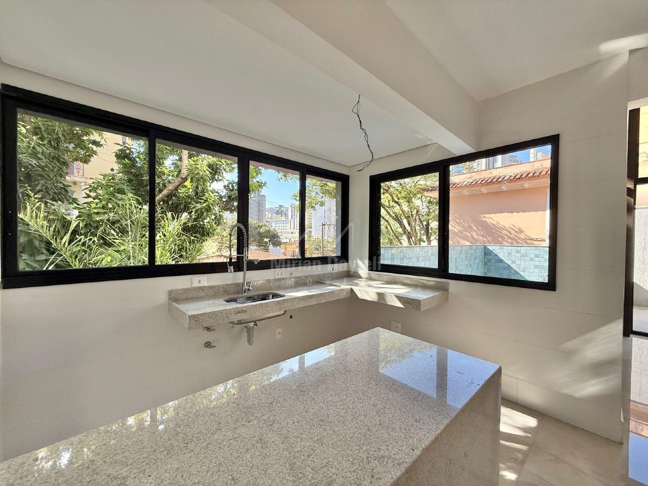 Apartamento com área privativa para venda no bairro Sion com área total de 267m², sendo de área interna 153m² e externa 114m²; sala para 2 ambientes; lavabo; área privativa descoberta com piscina individual; 4 quartos sendo 2 suítes e 2 semi-suítes, suíte máster com closet; cozinha americana; área de serviço independente; 3 vagas de garagem cobertas e demarcadas.