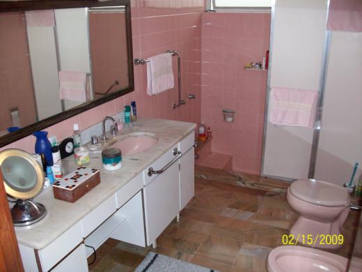 1º Nível: 4 quartos, 1 suíte com armários, janela de madeira tipo veneziana e piso carpetado. O banho da suíte com piso em mármore rosa pernambucano, pia em mármore branco, portas em madeira jacaranda, 1 banho social com piso em mármore branco e ante sala com lavabo no corredor, porta de correr para os quartos, 1 sala no final do corredor com passagem de roupas para o DCE (subsolod), 2 salas grandes (visita e TV com lareira e cristaleira embutida, porta de correr de metalon para o jardim de inverno, 1 escritório com janela madeira veneziana, 1 despensa com piso em marmroe, 1 cozinha ampla com bancada em granito preto, piso em mármore branco, forno embutido e interfone p/ os quartos. Ha uma escada para subsolo com piso e mármore brando.