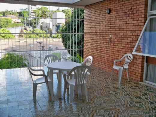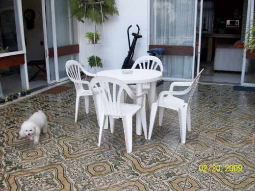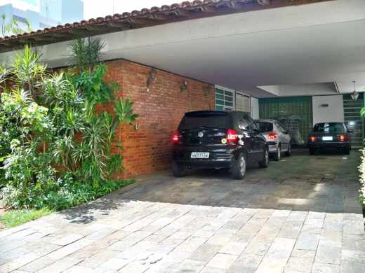 GARAGEM: 10 vagas sendo 6 cobertas, 4 descobertas, 6 presas piso de pedra, fundo parede de tijolinho de vidro.
