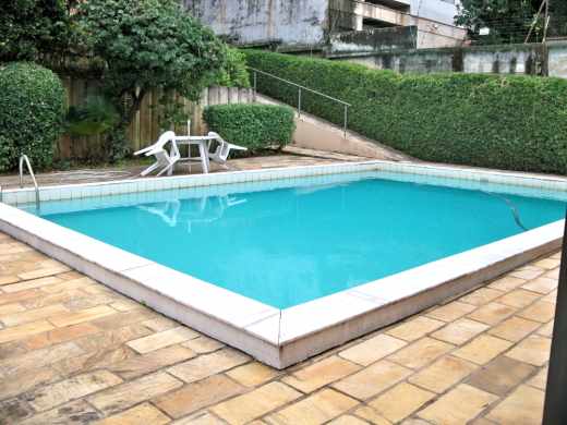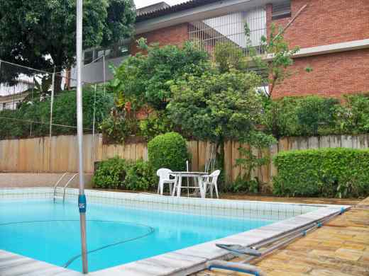 3º nível (subsolo): área de lazer (piscina grande, quadra ampla e pomar), ha um quarto com banho.