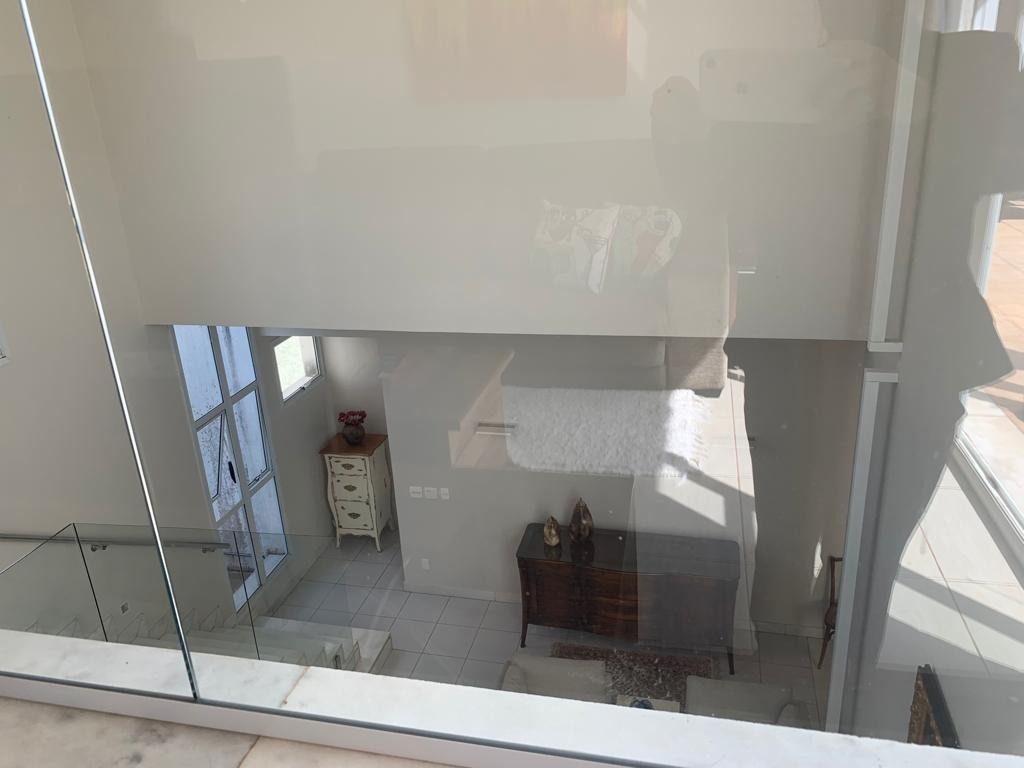 SALA PARA 2 AMBIENTES COM PÉ DIREITO DUPLO , PROJETO DE ILUMINAÇÃO ,CORTINAS ,PISO EM MARMORE E LAVABO .