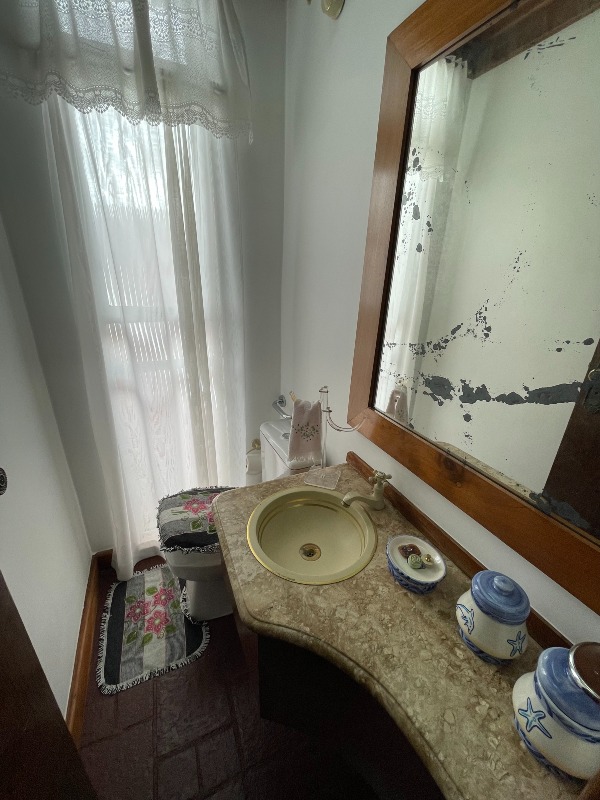1° andar: Sala para 4 ambientes com piso em granito, teto com rebaixamento em gesso e iluminação planejada. Sala de jantar, bar montado, lavabo, jardim de inverno, varanda com acesso para a área externa da casa e jardim. Cozinha com armários e copa.