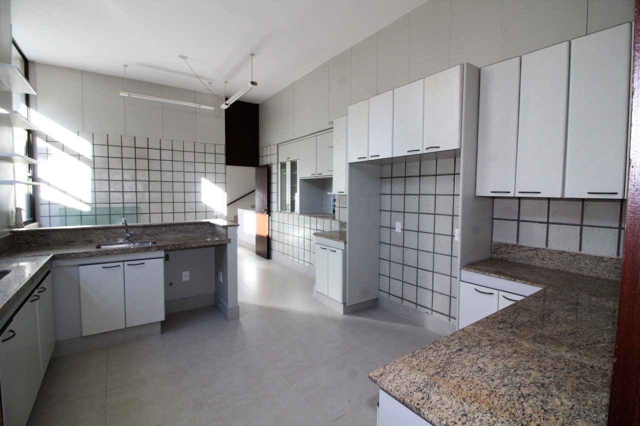 Cozinha ampla, com muitos armários. Todo esse nível com pé direito alto, diferenciado.