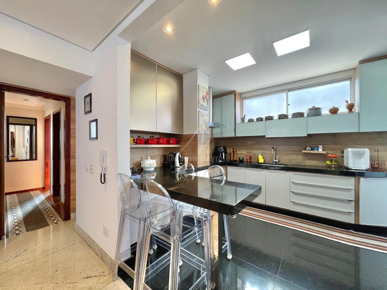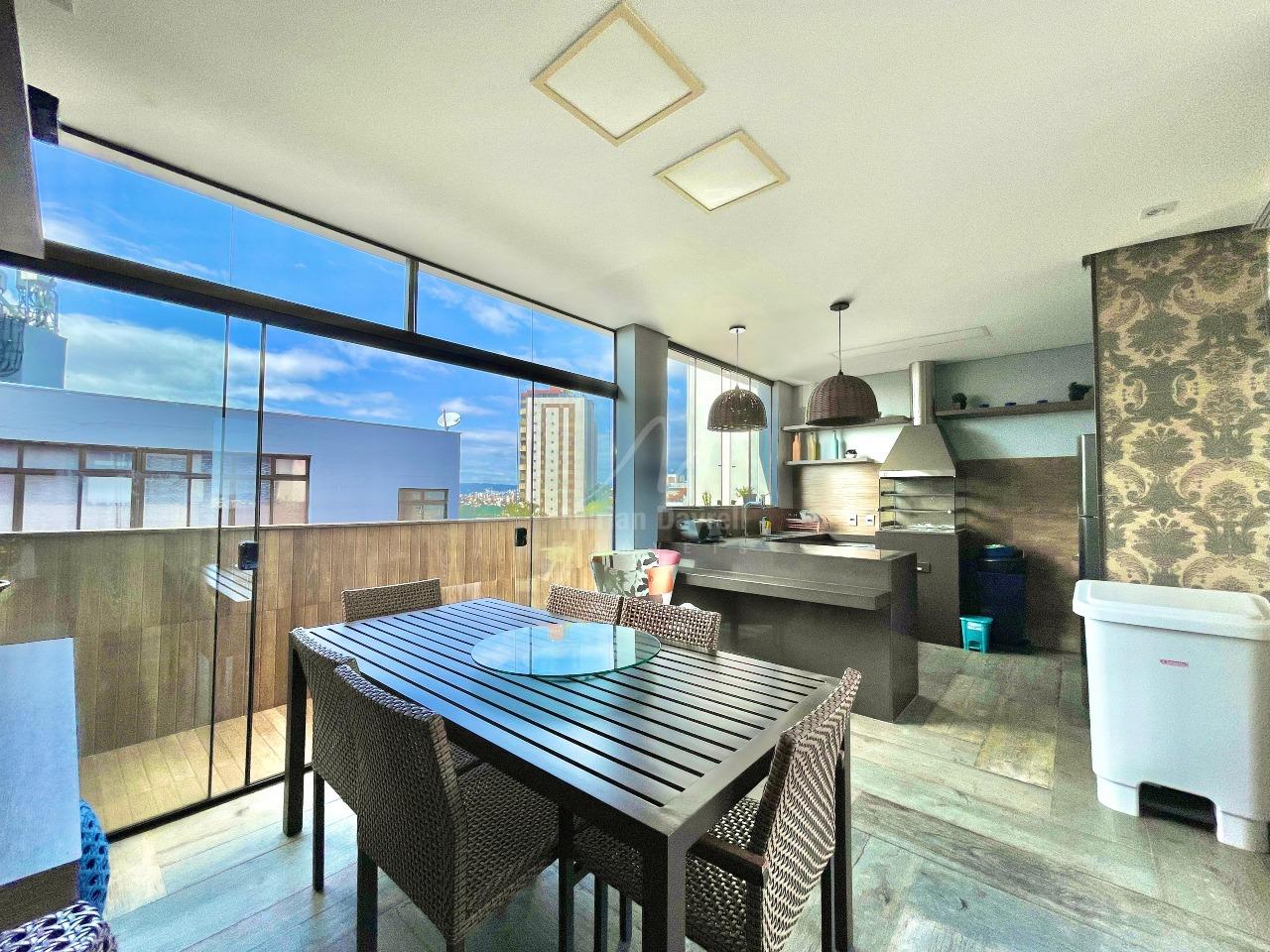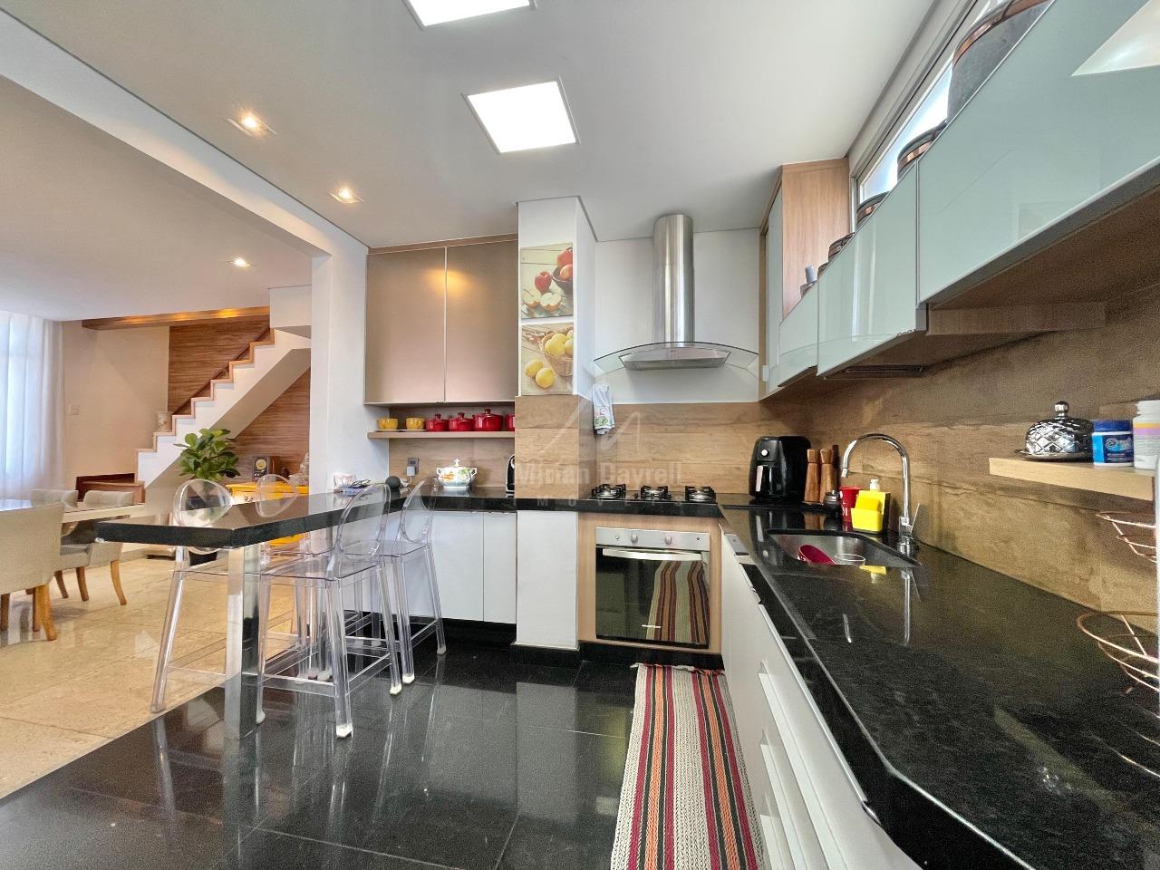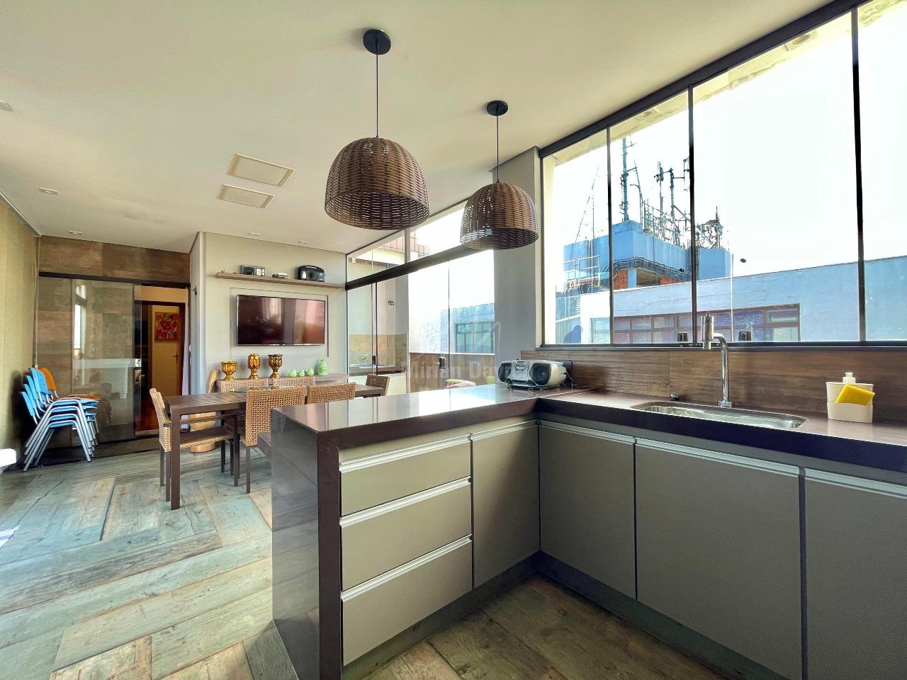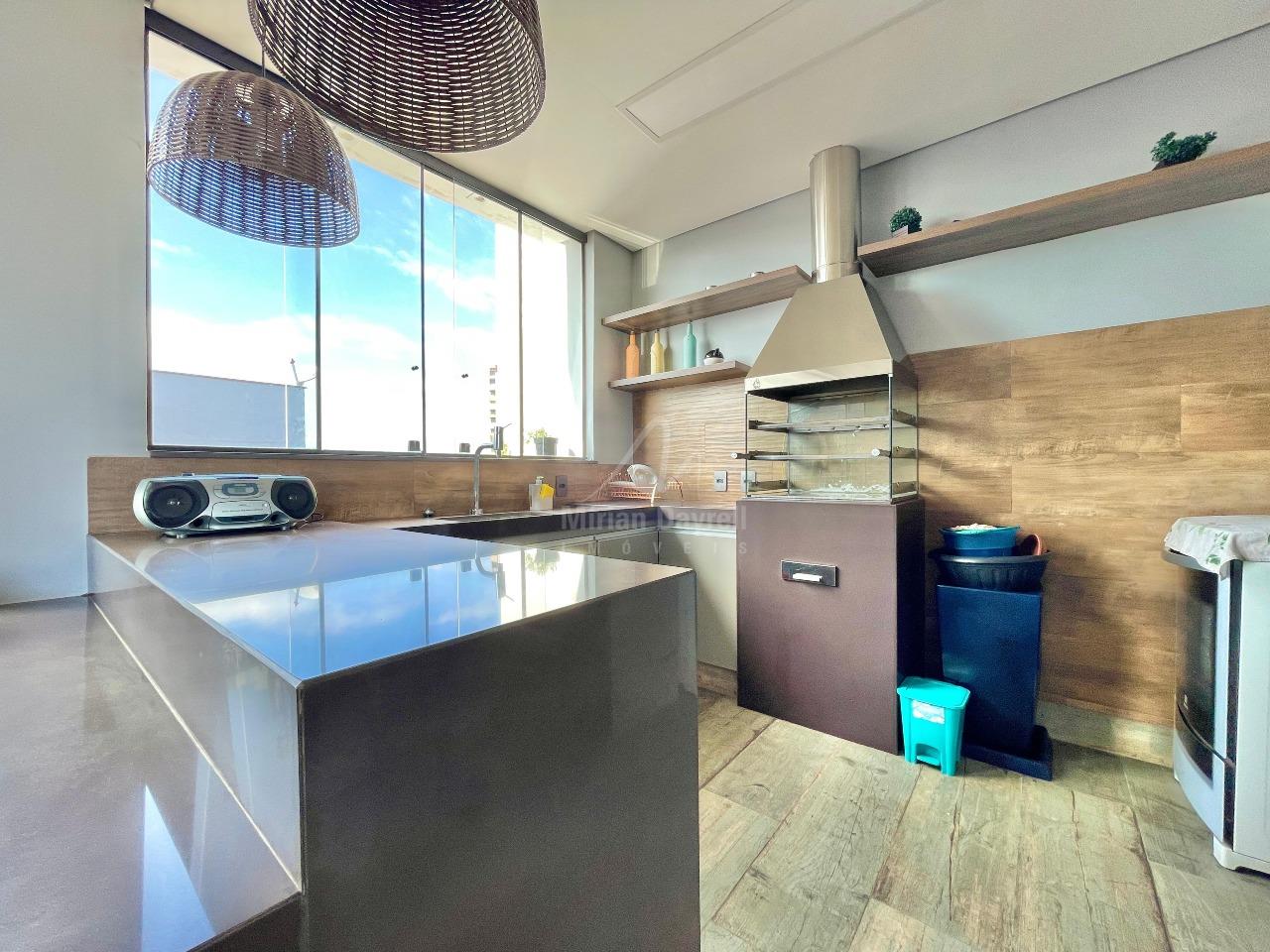 Cobertura para venda no bairro Ouro preto com 228m²; 1° Pavimento: sala para 2 ambientes com iluminação planejada e teto rebaixado; 3 quartos sendo 1 suíte; banho social e suíte com bancada, armários e box vidro temperado; cozinha com armários planejados e bancadas em granito; lavanderia e despensa.