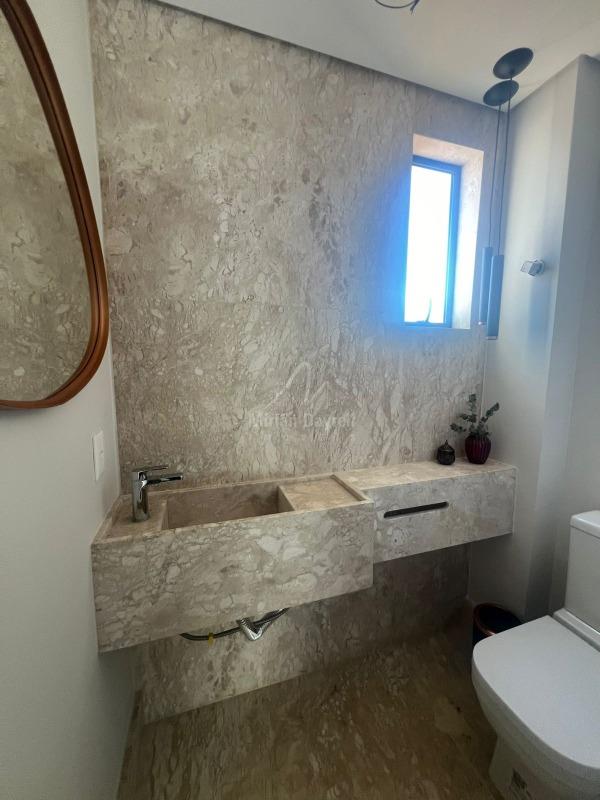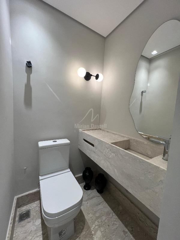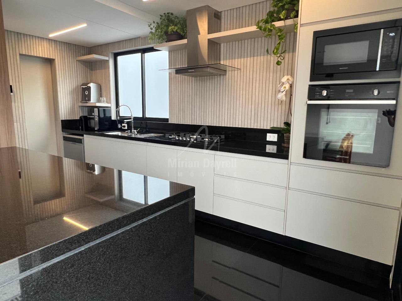 1° nível com 128,32m²: sala ampla para 3 ambientes, teto em gesso; iluminação planejada e ar-condicionado; lavabo; 3 quartos com armários, sendo 3 suítes com ar-condicionado; banhos com box e espelhos; cozinha americana com armários; despensa e varanda;