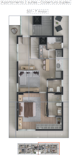 Cobertura para venda no bairro Gutierrez com 92,96m², sendo 59,67m² cobertos; sala para 2 ambientes; lavabo; 1 quartos, sendo 1 suíte; cozinha; área e banho de serviço; 33,29m² de terraço descoberto; 1 vaga de garagem livre, coberta e demarcada;