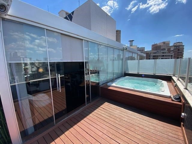 Cobertura: 1º Piso: Sala para 02 ambientes, 03 quartos planejados, transformado em 2 facil voltar, sendo 01 suíte, banho social com box blindex,e armários, cozinha planejada, área de serviços.