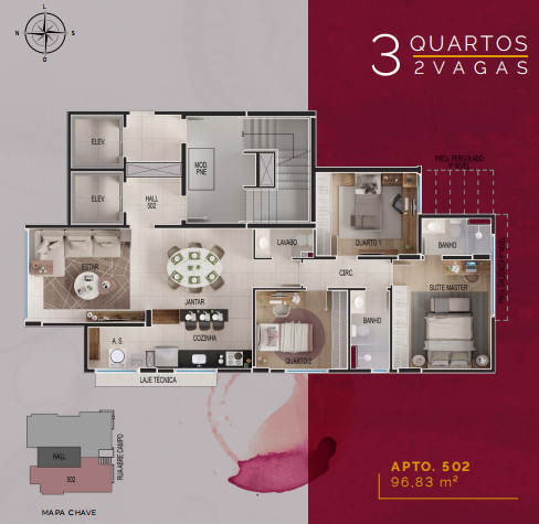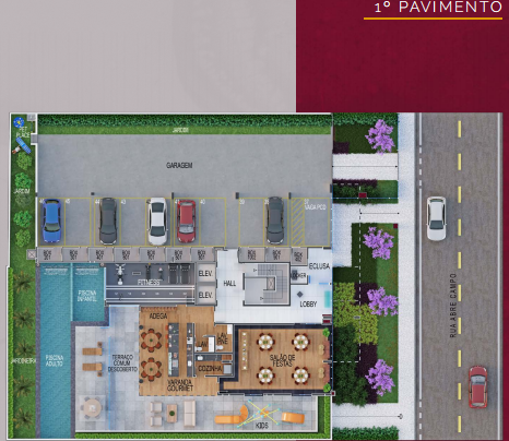 Excelente localização, próximo de comercio variado, 2 elevadores, lazer com piscinas adulto e infantil, salão de festas com pé direito duplo, espaço gourmet com choperia, espaço fitness, espaço kids, pet place, adega por apartamento, tomada para carregador de carros elétricos, sistemas de segurança.