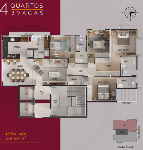 Taxa de enxoval 3 qts: R$42.000 e 4qts: R$52.000