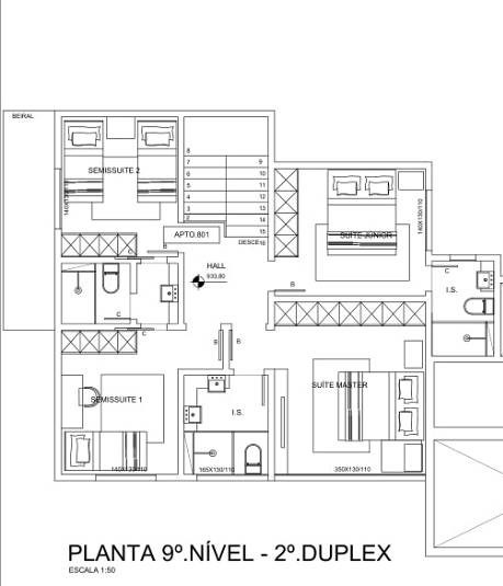 2° nível com 70m²; 4 quartos com piso em laminado, sendo 2 suítes e 2 semi-suítes;
